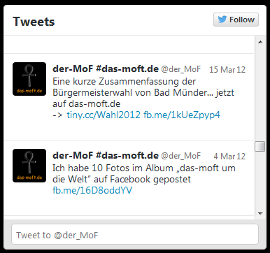 Startseite ist jetzt auch (m)eine Twitter-Box integriert.